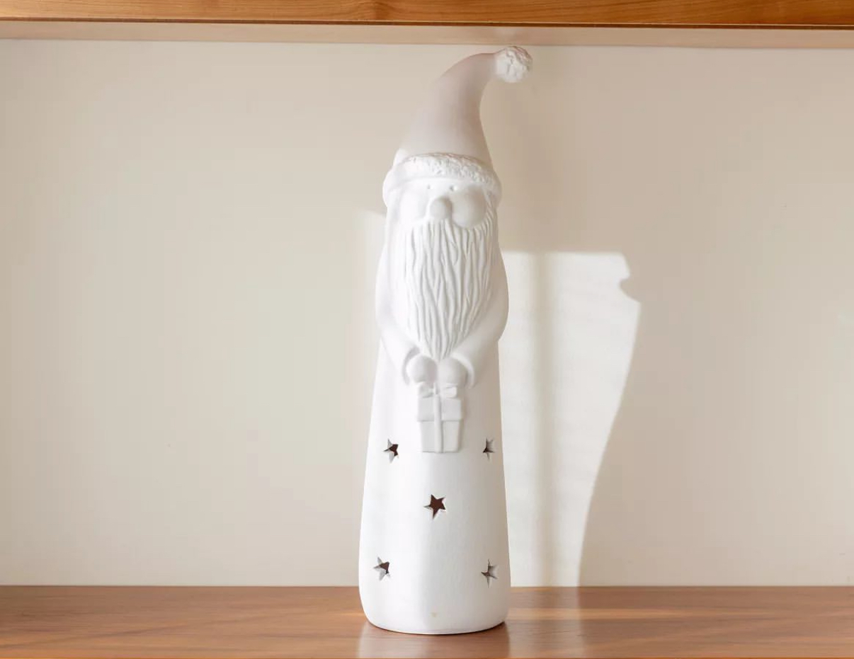 Magnifique Père Noel en céramique qui n’attend qu’à être éclairé pour apporter de la douceur à votre intérieur